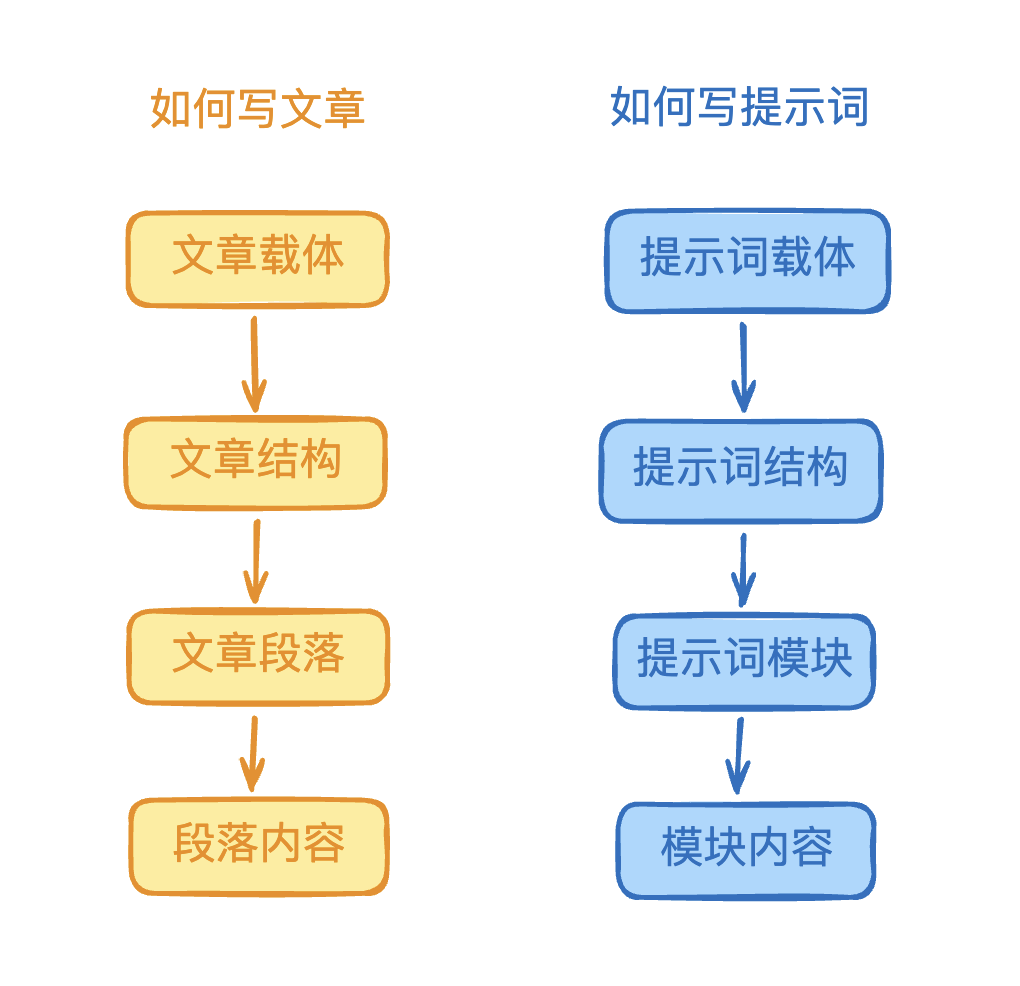 以用写文章类比提示词技巧框架逻辑: